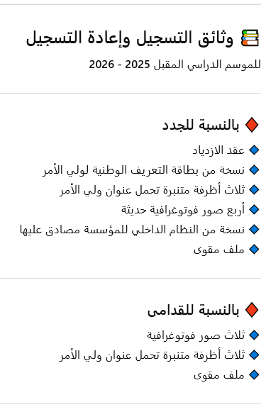 التسجيل و إعادة التسجيل مفتوح لموسم 2026-2025